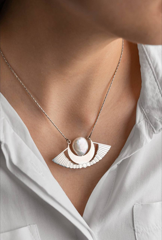 گردنبند نقره زنانه مدل 10-D با مروارید باروک پرورشی