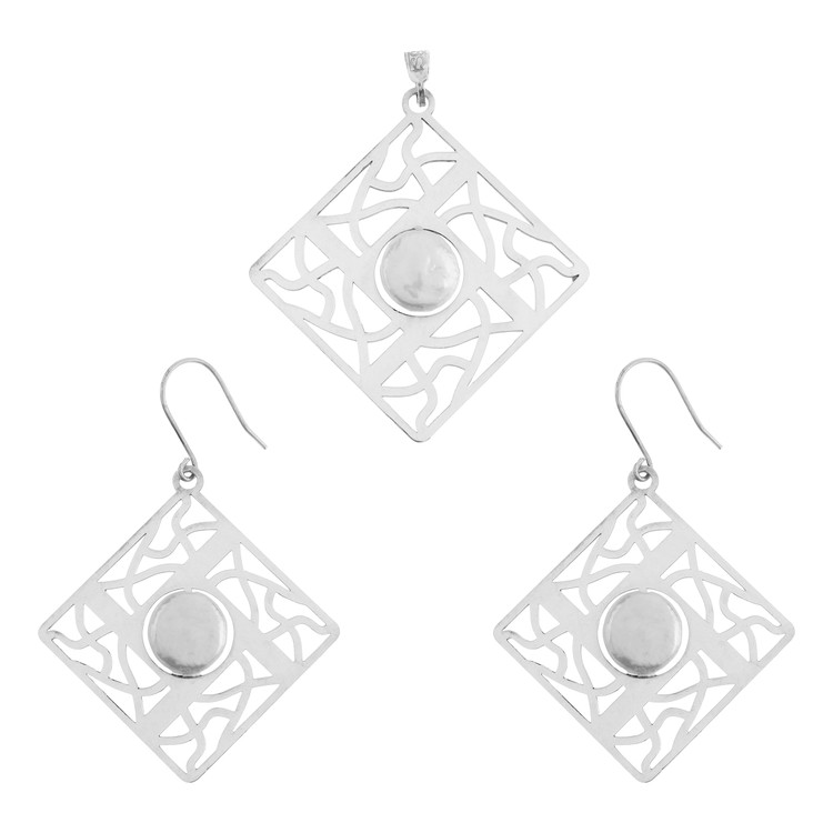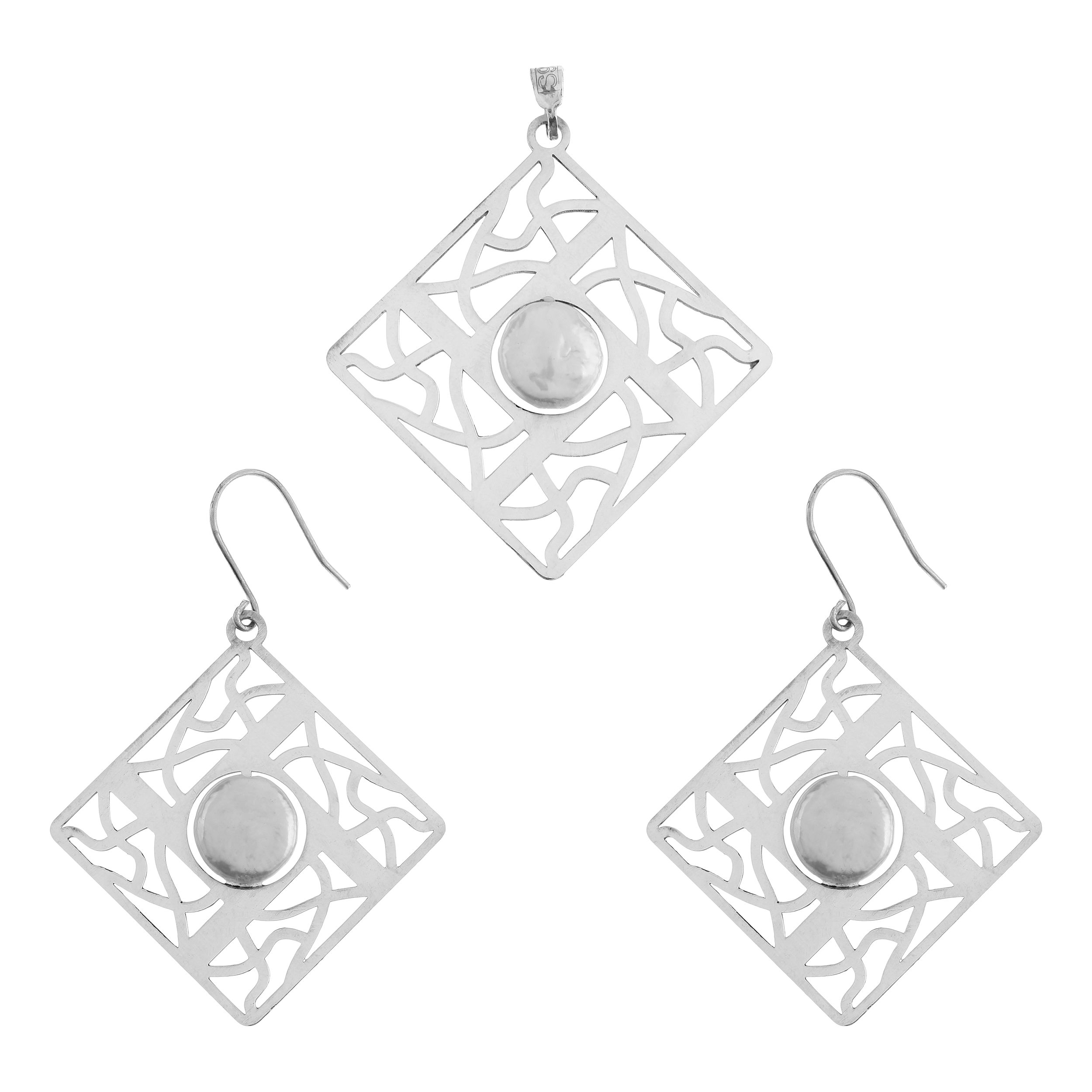 این نیمست از نقره عیار ۹۲۵ ساخته شده و شامل یک آویز و یک جفت گوشواره است.