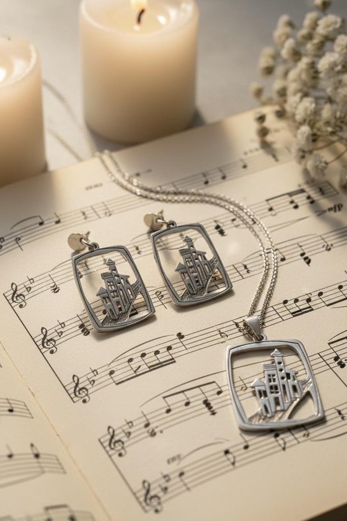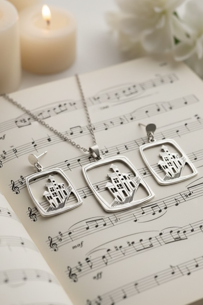 این طراحیها نه فقط زیور، که روایتاند: از پیوند هنر و ساختار، از موسیقی و معماری، از نور شمع و نغمهی نتها. هر قطعه روی صفحهی موسیقی قرار گرفته تا نشان دهد که زیبایی، در هر فرم هنری جاریست.